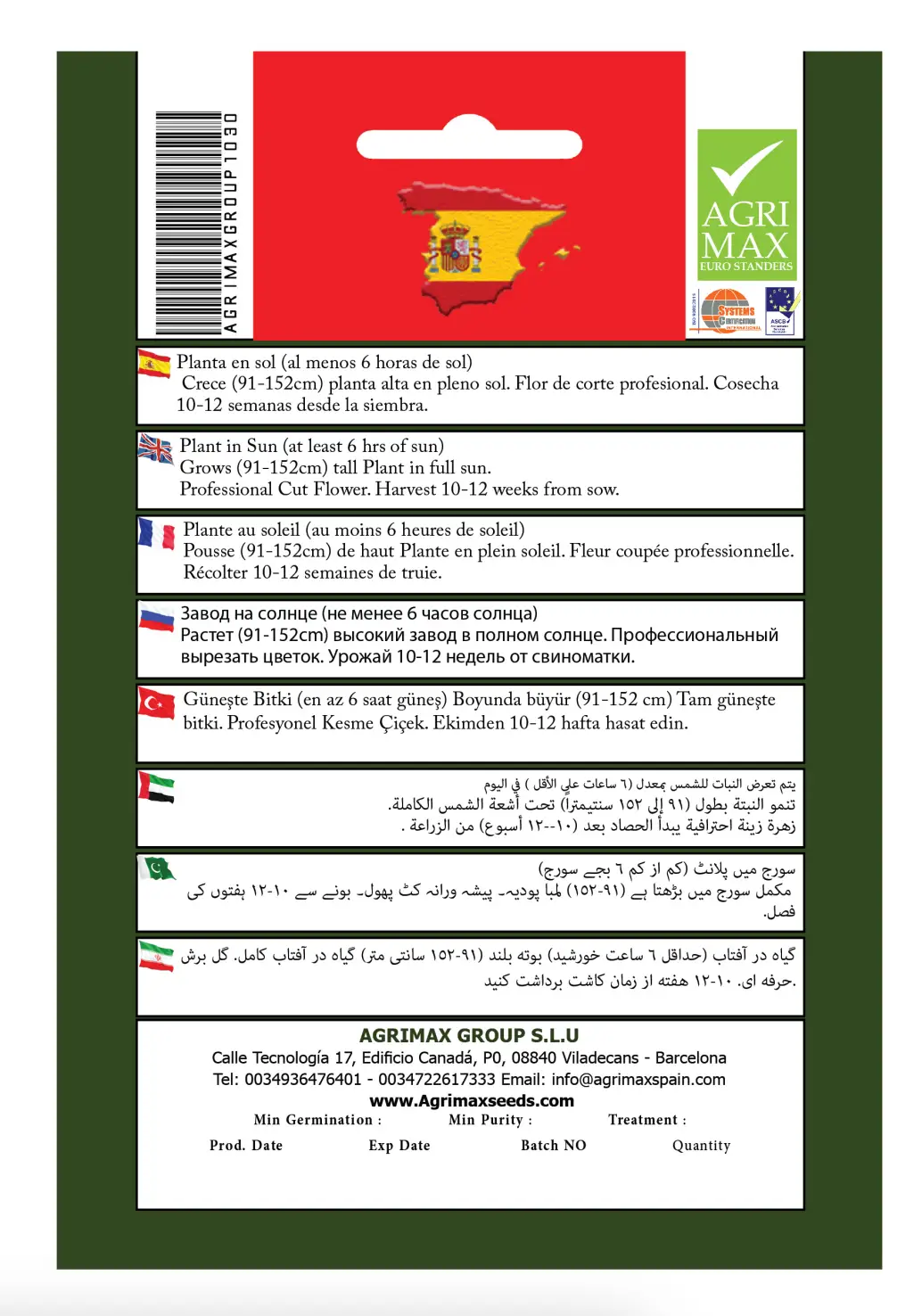 Agrimax Group founded in the EU city Valencia ( Spain ) and with the ambition to establish its vegetable seeds supplier position a cross several markets globally. The company moved the headquarter later to Barcelona due to increased demand and proximity to one of the biggest ports of Europe, the Port of Barcelona with the ambition to establish its vegetable seeds position across several markets globally. The company is known for providing a vast variety of seeds , all of which are of the highest qualities , and best performance.