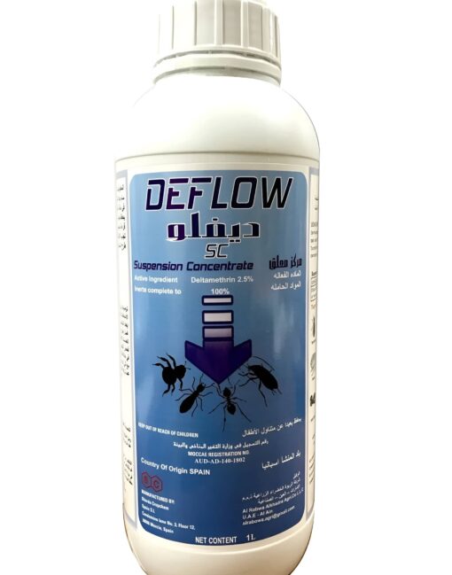 Deflow SC is a high-performance insecticide formulated with Deltamethrin 2.5%, offering rapid knockdown and long-lasting residual control against common household pests. This suspension concentrate is ideal for both residential and commercial use, providing a 100% complete solution for managing crawling and flying insects such as cockroaches, ants, flies, ticks, fleas, and mosquitoes. Manufactured in Spain, Deflow SC ensures professional-grade pest control with reliability and safety.