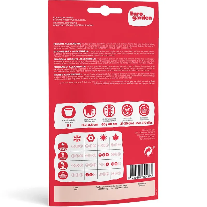 Bring sweetness to your garden with Euro Garden Strawberry (Freson Alexandria) Premium Quality Seeds. These premium seeds produce a bountiful yield of delicious, aromatic, and juicy strawberries. Freson Alexandria strawberries are known for their vibrant red color and sweet, intense flavor, making them perfect for fresh eating, dessert recipes, or turning into jams and preserves.