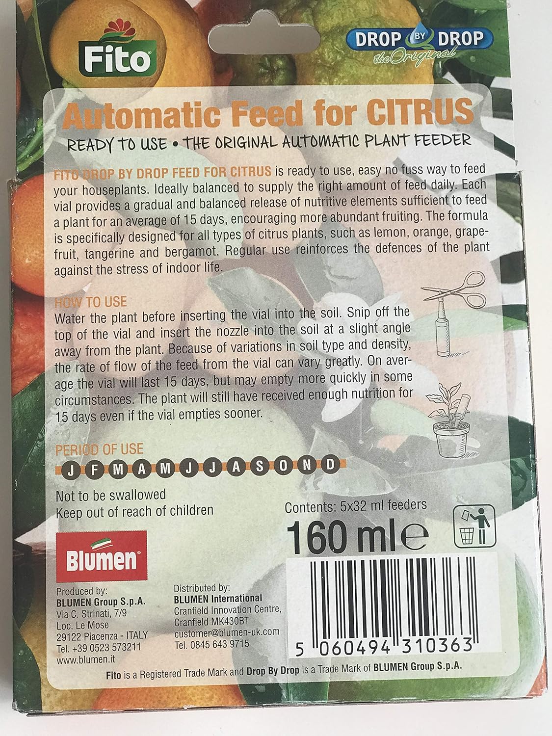 • Automatic citrus fertilizer – feeds plants for up to 15 days