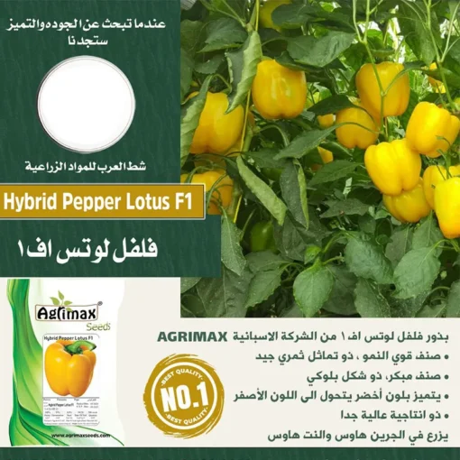 Grow Hybrid Pepper Lotus F1, a high-yielding, disease-resistant yellow bell pepper variety with a sweet, crisp taste, perfect for fresh eating & cooking.