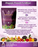 This fertilizer supplies potassium in an organic and easily available form, allowing plants to absorb nutrients efficiently without causing soil salinity or nutrient imbalance. It helps plants develop stronger stems, healthier roots, and improved flowering and fruiting performance.