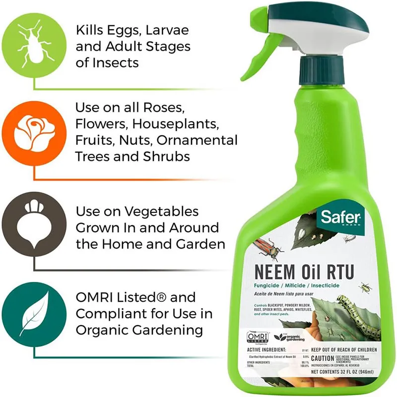 Safer Neem Oil RTU Fungicide, Miticide, and Insecticide – Organic Plant Protection | 946ml
