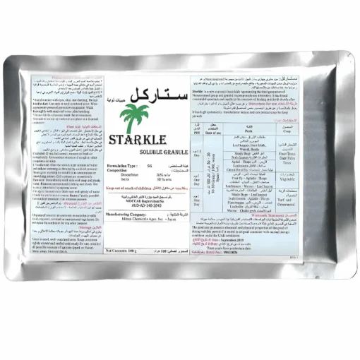 Starkle Soluble Granule solves the problem of persistent pests like scales, mealy bugs, and leaf miners that can damage the health of fruit trees, palms, and ornamentals. The product’s systemic action ensures long-lasting protection, helping plants thrive without constant reapplication.