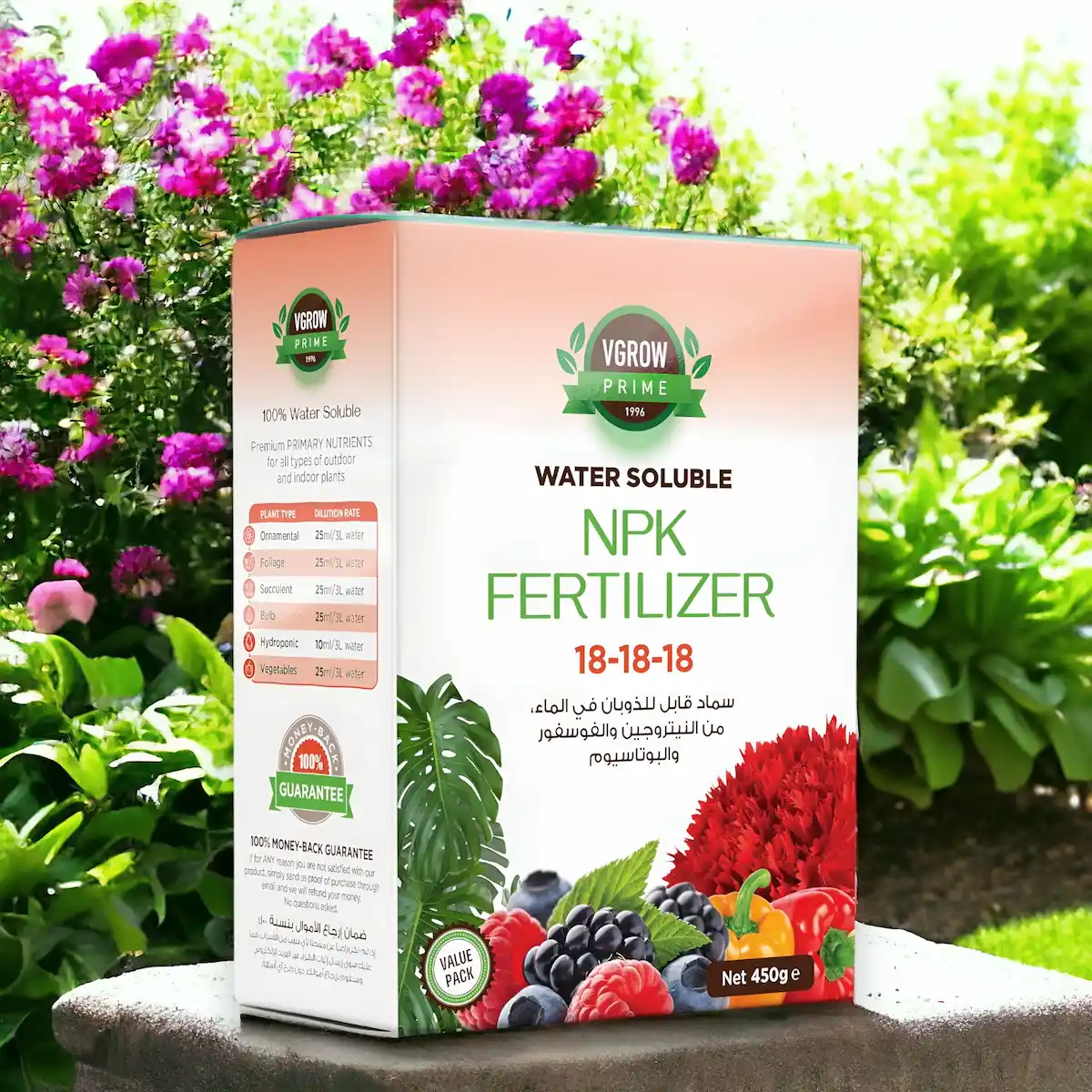 Vgrow Prime NPK Fertilizer 18-18-18 – Water Soluble for All Plants